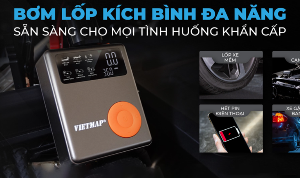 Bơm lốp ô tô không dây đa năng Vietmap MF139 giúp bạn có thể chủ động xử lý nhiều sự cố như xe bị non hơi, xịt lốp, xe cạn bình không thể nổ máy, điện thoại hết pin hay gặp sự cố vào ban đêm cần đèn chiếu sáng…